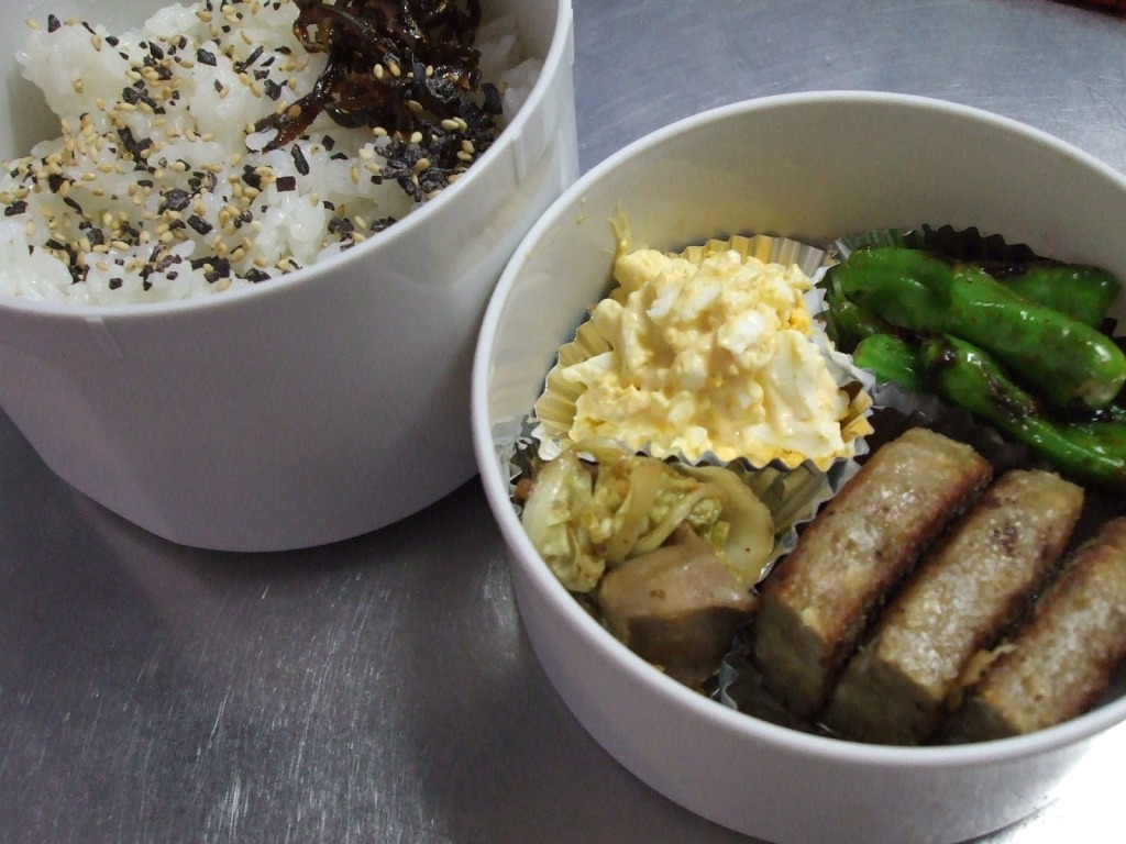 フライパンに多めのオリーブオイルを入れてニンニクのみじん切り・刻んだ高の爪2本・玉ねぎみじん切りを入れて弱火にかけておく。フライパンに材料を入れてから火にかけること。