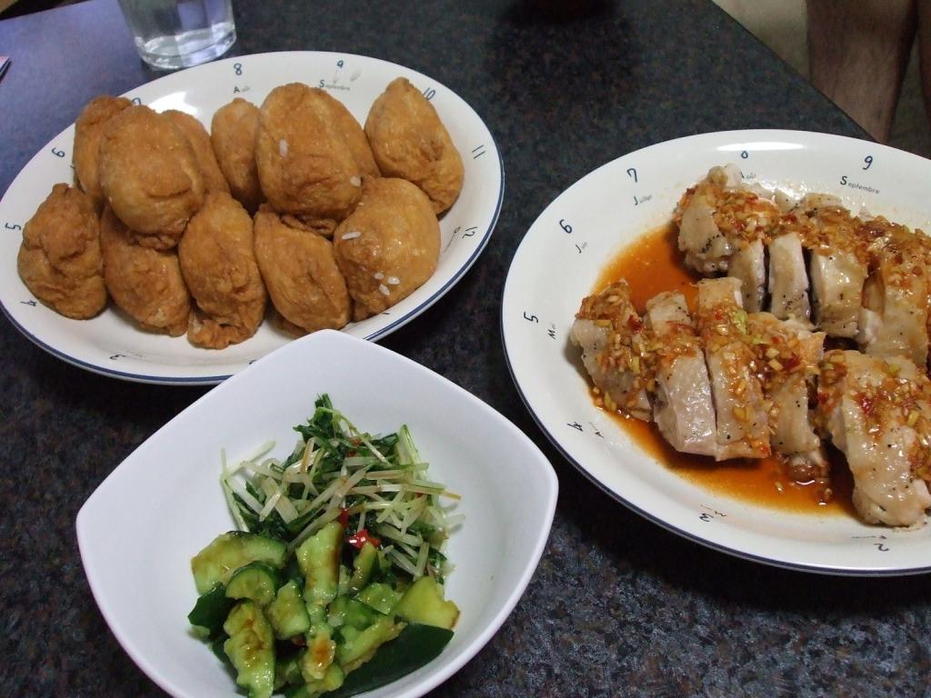 油揚げ10枚の味付けは、お鍋に出汁を3カップ煮立て、油抜きした油揚げを入れ、お砂糖大10、酒、みりん各大1でしばらく煮こみ(10~15分位)醤油大8程度入れて、煮汁が無くなる寸前まで煮る。